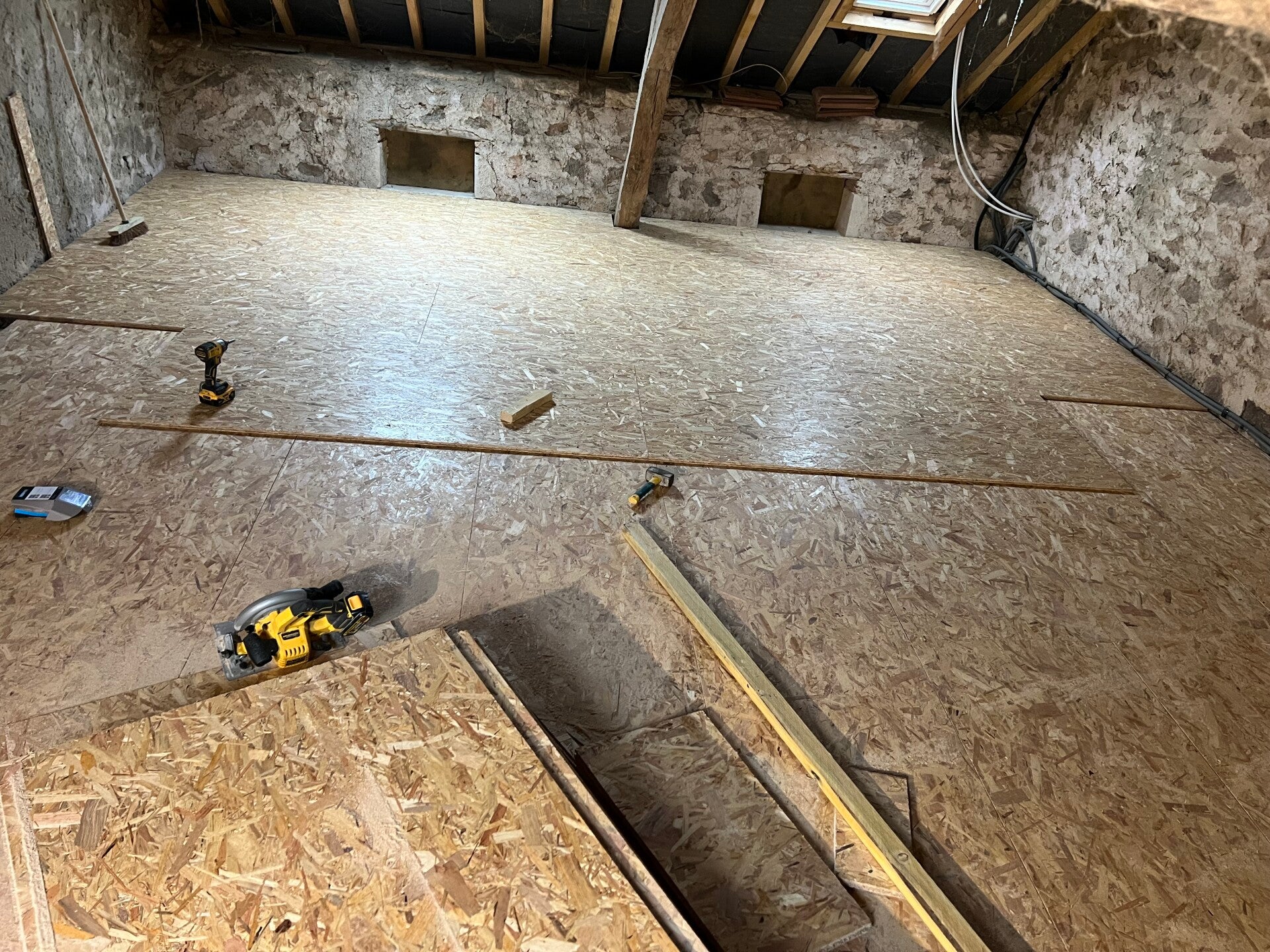 Planchers OSB : Création de surfaces légères, robustes et parfaitement planes, en support ou en finition vitrifiée.
